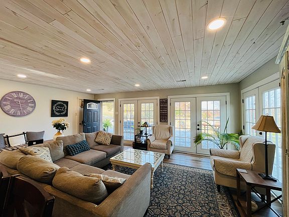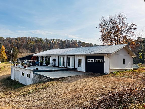 This homesteader's dream, a private 56 acres, includes a mix of woods, pasture, and ample natural spring water. The home features a total of 2,400 square feet including main floor and downstairs. With two bedrooms up and 2 sleeping rooms downstairs. The open living room and kitchen provide stunning views, thanks to a wall of atrium doors overlooking a picturesque 3-acre spring-fed lake stocked with crappie, bass, bluegill, catfish, and carp. Home underwent a complete renovation between 2020- 2022, featuring new vinyl plank flooring on the main level, updated windows and doors, a wood ceiling, recessed LED lighting. Both full bathrooms have also been modernized, with one including a soaking tub. The exterior has been updated with new wood siding, soffit, and gutters. The farmhouse kitchen boasts an 8-foot island/bar with a butcher block countertop and two pantries. Additional property features include two attached one-car garages--one on the upper and one on the lower levels. The property is dotted with five springs, a spring-fed pond, and a bonus artesian well. You'll find a mature orchard with apple, apricot, peach, plum, pecan, pear, nectarine trees, a grape vineyard, and raspberry, strawberry, and blackberry bushes. There is even a 16x100 greenhouse and a tool shed next to a large, soil-tested garden protected by solar-powered fencing. Enjoy a spacious wrap-around patio and a treated wood deck leading to a 16x32 recessed saltwater pool. The home has geothermal heating, central AC, and a generator. A tri-plex on the property has been partially gutted with electricity and plumbing in place and is waiting on your custom design based on your specific needs. The shop is 45x24 with concrete floors, electricity, and a machine shed for equipment storage. This property has so much to offer that listing everything is impossible. The sauna does NOT STAY. NO SHOWINGS ON SATURDAY