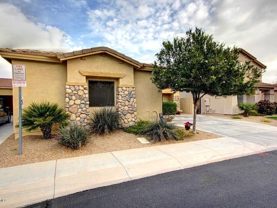 This home shows like a model because it used to be one. Sparkling clean and well maintained. Open floor plan with 3 bedrooms with one set up as an open den with built-in desk area. Highly upgraded kitchen with maple cabinets granite slab countertops glass door and wine storage cabinets. Built-in microwave. Spacious breakfast bar and formal dining area. Upgraded mirrors and light fixtures in the bathrooms. Security system and speaker system with three controls. Wood blinds throughout the home. Master bath with granitex countertop and shower surround. Extensive travertine tile flooring. Plush berber carpeting. Upgraded ceiling fans. Two car side entry garage. Gated community where HOA maintains the front yard landscaping. Exterior repainted in 2012.