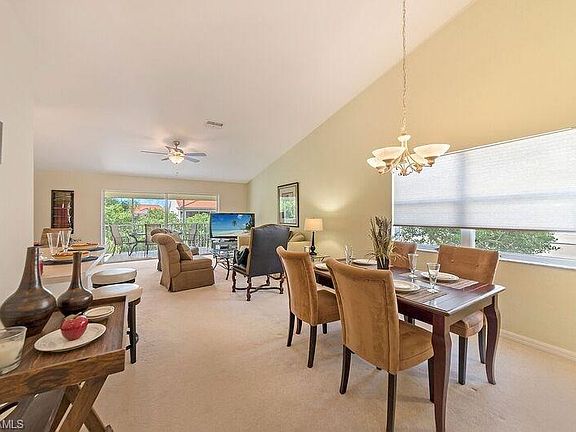 Spacious 3 Bedroom, End unit. Attached Garage. Price allows for updates. Nice Open living floor plan in a Private setting with preferred Southern exposure. Big tiled lanai is open screened on both sides and perfect to enjoy Florida outdoor living and have afternoon drinks and entertain. Large Master suite features his and her walkin closet, dual sinks, shower and soaking tub with separate room water closet. Guest spots are directly next door and enjoy your own extra long brick driveway. And this unit does NOT require you to pay golf fees! Perfect for Club amenities at low cost. Short stroll to Community pool, Hot tub, Tennis, pickle ball and neighbor gatherings. Social Club Membership to dine, drink at the bar, play cards, billiards, ping pong, use library. Full Fitness Gym, classes included. Play bocci ball. Har-tru lit Tennis courts. Golf May to Nov and long Reciprocal list. Plus location! All conveniences out front & back gates. Only 4mi to Olde Naples, beaches, dining, shops, art, theatre, more! Near I-75. Includes cable, internet, water.