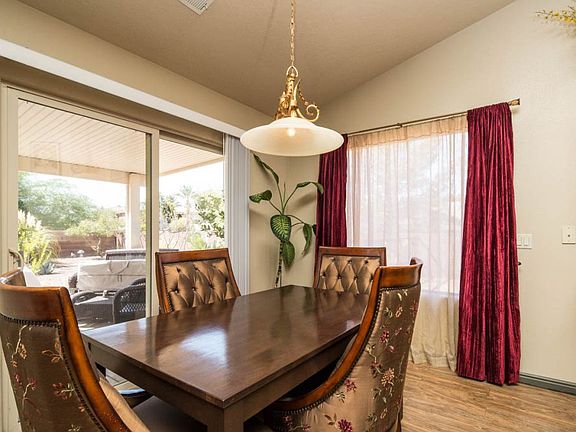 This Ence Five Star Energy home was the model home. Large Corner lot at the entrance to Falcon Glenn subdivision. This home features an open floor plan with vaulted ceilings. Kitchen has knotty alder cabinets and large pantry. Master bathroom includes a garden tub and walk in shower, dual sinks and walk in closet. Living area and bedrooms has laminate wood floors. Large backyard with views of the Virgin Mountains and an abundance of outdoor plants and grass. Large covered patio.
