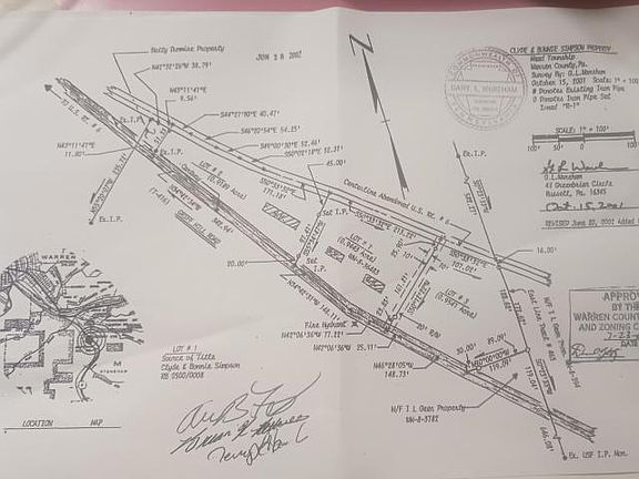 Nice lot with cement pad suitable for mobile home or camping trailer with city water and city sewer. Natural gas and electric at site. Close to Allegheny National Forest and Kinzua Dam and marina.
