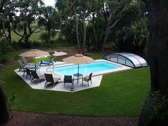 STUNNINGLY BEAUTIFUL CUSTOM-BUILT HOME with /never-ending Ocean/Creek/Marsh Vistas. Home & Salt-water pool nestle in seabreezes & Live Oaks. Gated ocean-side community convenient to shopping & restaurants. Features include: Metal roof Elevator Gourmet Granite kitchen study up & down living areas 3 Geo Thermal H/AC systems whole house R/O system wet bar w/Scotsman Icemaker Intercom/speaker system 2 propane tankless water heaters swimming pool w/retractable cover two fireplaces spacious casual floor plan & much more. High quality construction & materials; Mint/Like-new condition Flood Insurance $540/yr. A BEAUTIFUL HOME LOCATION AND VALUE-DON'T MISS OUT!!