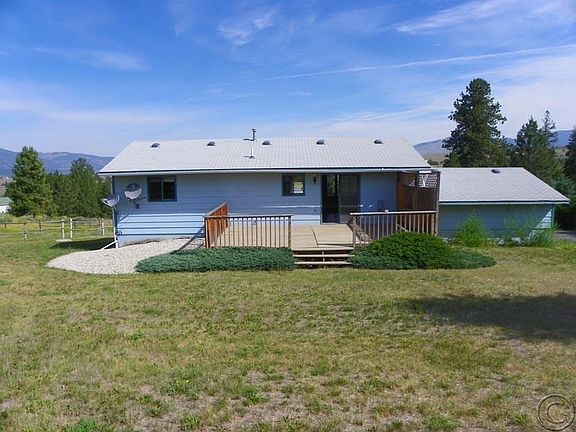 Have received an accepted offer, waiting for the contract to be signed and returned. This is a HUD home Case # 311-220645. All HUD homes are sold "as is". Re-List Cute raised ranch on 5.62 acres. This home while compact is well appointed. The open space kitchen, dining and living area allows for the most usable space in all three areas. A wooden deck is just off the dining area and the bright sliding doors provide a view of the rolling hills, trees, backyard and the fenced vegetable garden. While the large living room windows in the front give a majestic view of the mountain scape provided by the Bitterroots in the distance there is also a delightful view of a small creek with wildlife where with patience you can see Great Blue Herons. Each of the bedrooms also have great views. The master bedroom has an adjoining door to the main level bath. Downstairs are very large bright rooms in the front with a set of wooden french doors separating the two large rooms. Adjacent are two large rooms that could be dens or offices. The one on the west end could be made into another bedroom if a egress window were added. The larger room is adjacent to the large full bathroom. Also on this level is the laundry room - utility room. The acreage is fenced and cross fenced. The front yard holds the well and there is a frost free spigot at the fence along with an electrical outlet. Beyond that fence is a pole barn and the fences and property continues to the west and south. The double car garage attached has an exterior access door and a door that connects to the staircase so there is easy access to the main level and the basement level.