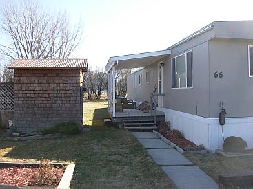 Remodeled home at Hidden Valley Park with large corner lot, privacy hedge covered porch and shed. Mobile Housing 587-0053