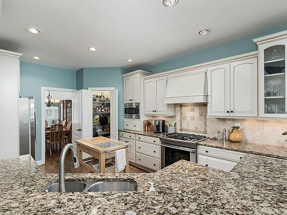 - Kitchen Features: Eat-in Kitchen, View to Family Room, Stone Counters, Pantry Walk-In, Cabinets White, Wine Rack