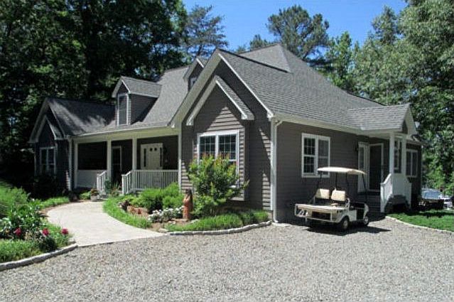 This elegant Cape Cod offers great privacy on 4.9 acres, Hardiplank siding, 2-zone HVAC & conditioned crawl. H-shaped floorplan wraps around large waterside Scrn Porch. LR w/wood floors, gas log FP, built-in shelving & formal dining area. Kit has breakfast nook. Owner's Suite & Kit open to Porch. Large Den off Kit. Upstairs Guest Suite w/skylights. Detached 2-car GA & 2 sheds. Backyard stone patio. Septic for 4 BR. Golf Cart included, path to dock w/5' & lift.