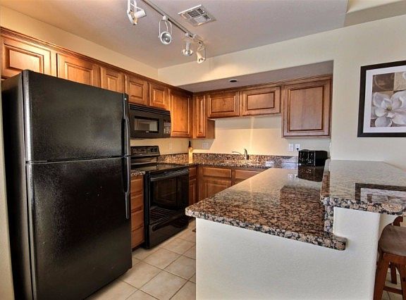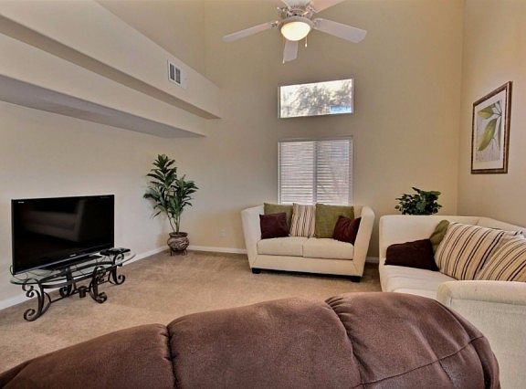 Furnished 3 bdrm, 2 bath condo ready to move into. Bring your personal items and YOU ARE HOME! The great floor plan has two guest bedrooms and a full bath on the main floor, and the oversized Master suite is upstairs. The living area has vaulted ceilings, the kitchen has beautiful granite. Conveniently located close to shopping, casinos, golf courses and beautiful national parks. A pool and work out room is right down the walkway.
