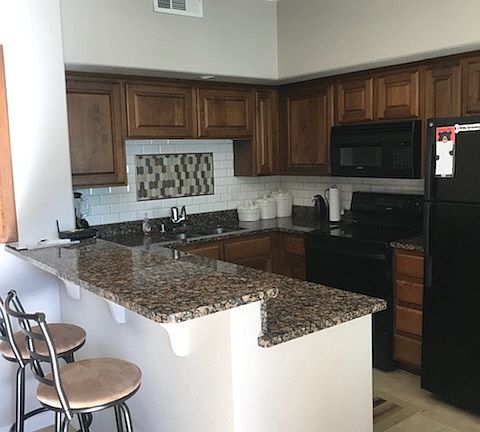 Rare ground floor condo at HawkRidge Condominiums!! Super clean and move in ready. Front covered patio faces East which provides nice shade in the afternoons to sit out on your patio and enjoy the scenery. Features include tile in kitchen and dining and bathrooms, granite countertops in the kitchen with raised panel cabinetry and up to date light fixtures throughout. HawkRidge Condos is one of the few options available for both long term rentals and short term rentals if you're looking for a great investment opportunity. Don't miss out on this condo!