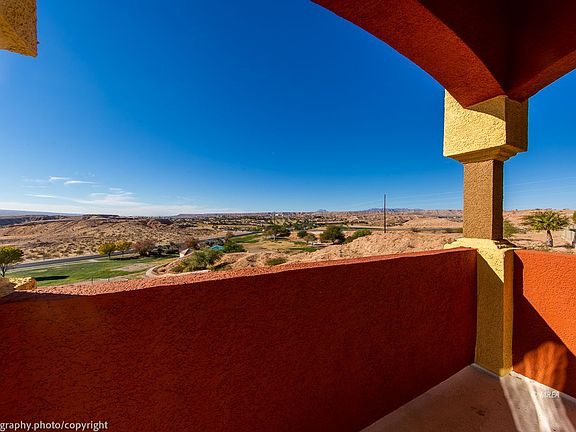 Location, Location, Location! This Hawk Ridge condo is located in a well maintained community north of I-15. This premium location is hard to find and conveniently located within the development. The setting is exceptional offering varying views of the southern mountains, City of Mesquite, Marilyn Park and distant golf course fairways. Enjoy Mesquite's awesome weather and panoramic vistas from the covered balcony. This condo is fabulous for year-round living and is the perfect vacation getaway or investment property. Nightly rentals are allowed in the development. The floor plan is open, the ceiling is soaring and the paint tones are neutral. The kitchen has granite counter tops, raised panel cabinets and tile flooring. There are two master bedrooms, one on the main level and one in the spacious loft. The guest bedroom and laundry closet are on the main level. The condo offers plenty of storage space inside and a good size storage room outside. The community swimming pool, spa, clubhouse and fitness room are within close proximity and the RV Parking is convenient. The HOA fees are all inclusive.