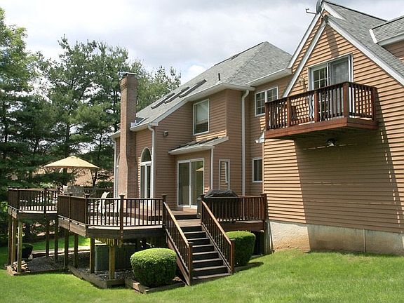 Gorgeous water views! Stately brick colonial completely and totally refurbished in year 2006 perched hillside overlooking the Neshaminy Creek. 2-story family room with floor to ceiling brick fireplace and French doors to outside deck. Completely remodeled kitchen with granite countertops, tumbled marble backsplash and state of the art new appliances. Formal living room and dining room with hardwood floors, crown moldings, and wainscoting. First floor study/library with custom built-ins. Second floor vaulted master bedroom with new sumptuous master bath. Three additional bedrooms with new Jack and Jill Bath. Full finished lower level with raised hearth Fieldstone fireplace and bar leads to outdoor patio. Almost 2 acres of mature and meticulous landscaping! Beautifully done! A perfect 10!