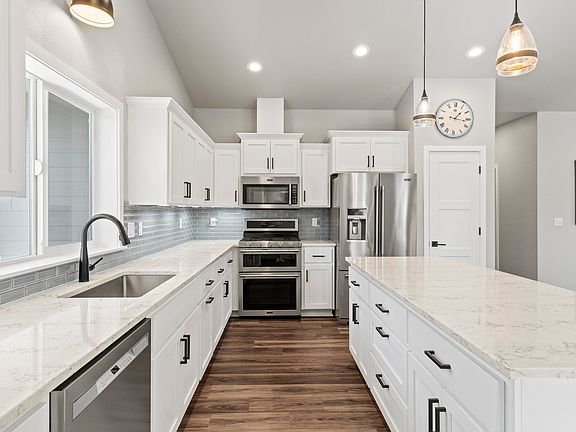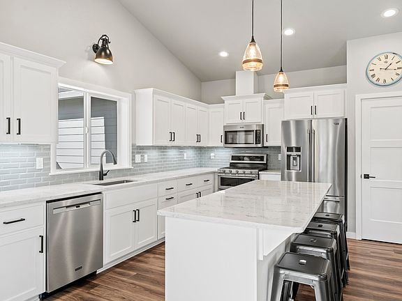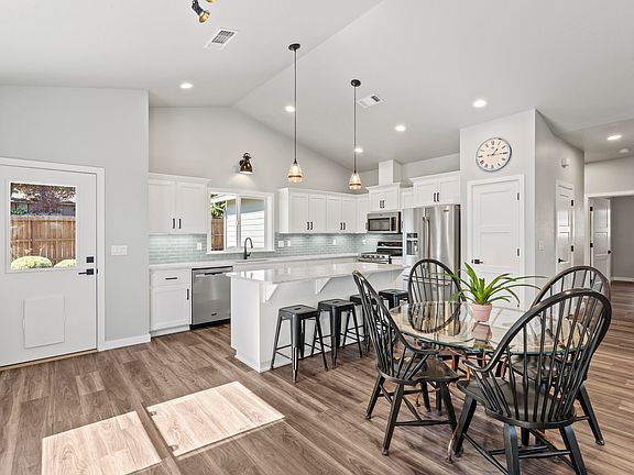 Quality, thoughtfulness and pride of ownership is clear in every aspect of this lovely single-level contemporary home in sought-after NW Grants Pass location with manicured landscaping, garden and RV parking. Enjoy the privacy of being tucked away but with all the charm and curb appeal you could want. An open floor plan welcomes you into a light and bright vaulted great room where the large island kitchen acts as the perfect center-point and the high-end amenities, such as luxury vinyl flooring, quartz countertops, under-mounted sinks, stainless steel appliances, gas range, and tile backsplash, create a pristine and elegant space. The spacious primary suite can accommodate a sitting area and includes an ensuite bathroom with double vanity, cultured marble shower, walk-in closet and enclosed toilet. Extra large attached 2-car garage has plenty of space for workshop and storage. The grounds are equip for easy-care and entertainment with gas-plumbed fire pit, covered patios and pathways.