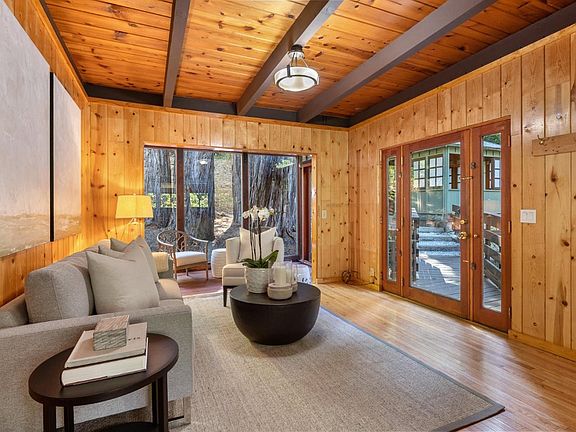 Perfectly situated, this serene country home blends comfort with sunshine and privacy, yet minutes to town. Spanning approximately 1.70 acres of sunlit grounds the home harmonizes perfectly with nature. Whether a primary residence, or a weekend escape from urban living, this home offers utmost tranquility with close-in convenience. A spacious spa set within a wood-paneled building encircled by shoji screen windows. Inside, discover the charm of this 3-BD plus office, 3-BA home, and hardwood floors in most rooms. The welcoming great room with natural light from windows & a glass-lined front alcove, seamlessly combines living, dining, and kitchen. The main level has 3 bedrooms, including a primary suite with sweeping views & deck access. The 4th bedroom, with its own entrance, and bath are on the lower level, along with a spacious project/laundry room. Plus a detached 2-car garage and access to acclaimed Woodside Elementary (K-8) School just down the road.