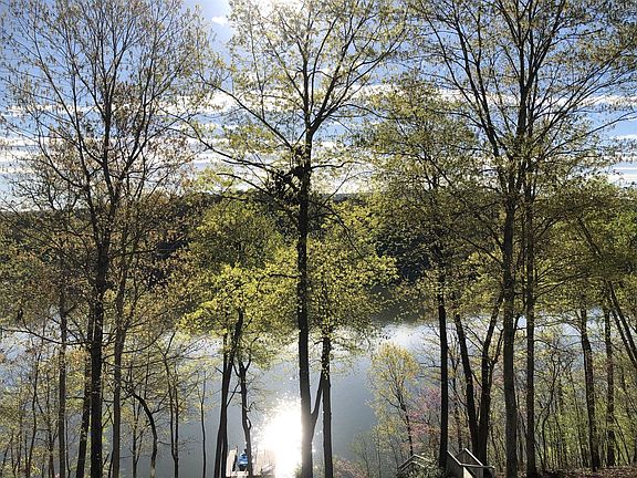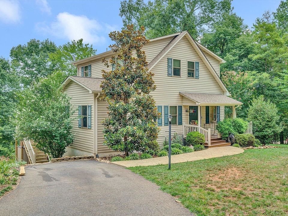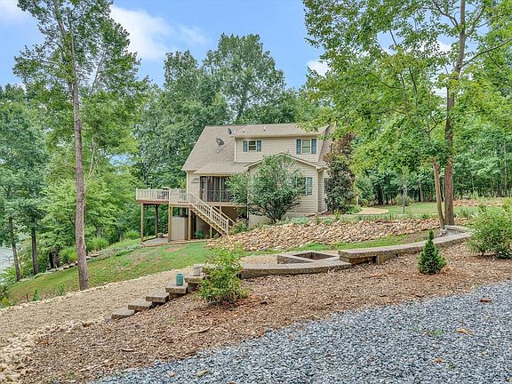 The true essence of what you dream about in a lake home, A-frame style, with wood lined ceilings and immense windows to capture the wide water views. You'll feel like you are living straight out of a painting; all four seasons. The floor plan offers two complete living spaces, with two full kitchens, one on the entry and one on the lower level. Rest and retreat around the newly created fire pit area, perfectly positioned for star gazing, enjoying nature and your outstretched water view. Many updates including: 2 new heat pumps less than a year old (still under warranty), leaf guard gutters, invisible fence, refrigerator and new gas logs with remote. You won't be disappointed with the deep water and privacy this double lot offers. The community offers excellent amenities including a