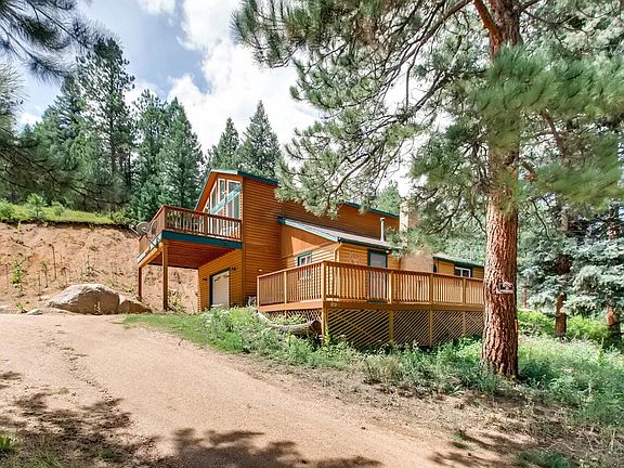 This cozy cabin, located in the foothills of the Rocky Mtns in Sedalia, is only 35 minutes from downtown Castle Rock & makes the perfect mountain get-away or a secluded, private residence! Easy access to Pike National Forest, the South Platte River, local campgrounds & Rampart Range Rec Area. The 5 acre property has a year-round creek, an outdoor storage shed w/ carport, a circular driveway for easy access & room to build. The cabin itself has 2 spacious beds, 2 baths and flex space. Upstairs family room is bright with a wall of windows, tons of natural light & opens up to a large deck. Lower level has an open kitchen, new flooring & access to another deck. Original cabin was built in 1954, but the large addition was built in 2008. This cabin can be used as 2 separate (upper and lower) living spaces, may be used for a rental income or with having one wall opened up to the staircase, may be used as one single-family living space...lots of options! Property is bring sold AS IS.