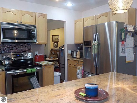 This is a gem of a home. Featuring new wood flooring in living room, kitchen, dining room, and family room. Family room with fire place. Kitchen with Appliances. Breakfast area plus formal dining Dining room with patio doors leading out to two story deck. 1 full bath on main level. An open stairway awaits you as you enter the front foyer. Upper level with 4 bedrooms and 1 full bath plus 1/2 bath. Master bedroom suite with patio doors leading out to two story deck. Full basement. Attached 2 Car garage. Covered front porch. Landscaped lot, located less than 5 minutes from the city on a quiet no outlet street.