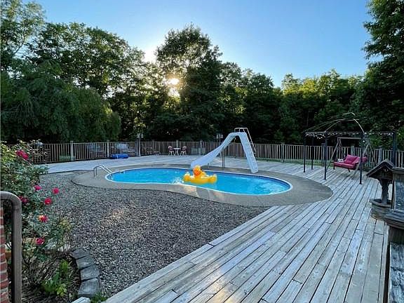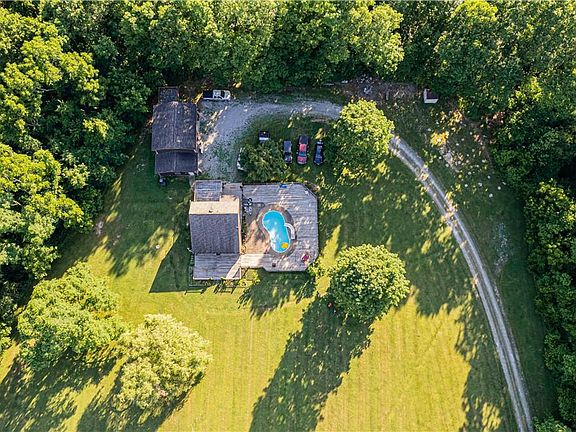 Country living at its finest at this gorgeous 13+ acre, 4 bed, 3 bath rustic home, with an in-ground pool. The main floor is an open concept kitchen, dining and living area with a bedroom and a full bath. 2 bedrooms are upstairs, overlooking the living area, loft-style. The second full bath is accessible to both bedrooms, and one of the bedrooms even has its own deck. The basement, with a huge laundry area, can be entered from the main floor and steps to the outside. This house boasts an enormous 3 car garage, which above, features a private apartment with a bedroom, living area, kitchen, full bath, and balcony overlooking Ten Mile Creek . Get ready to entertain in numerous areas around the home at the deck for the pool, front, and back to grill/spend time with family/ or simply relax in the peaceful, quiet setting. Your paradise awaits!