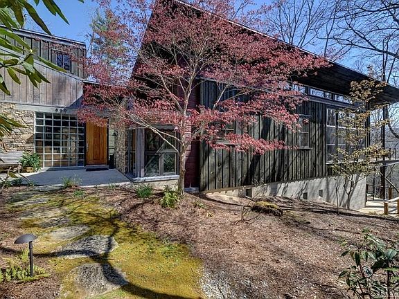 Designed by architect Reggie Gibson, this fully furnished, stunning modern home is in a style reminiscent of Frank Lloyd Wright but with its own DNA. On 5+ acres in Holly Berry Estates & strategically sited to stay warm in winter and cool in summer. Mountain views could be expanded w/pruning. Light & views from every room w/multiple living spaces indoors & out. Soaring ceilings & walls of windows in open living room, dining room & kitchen. Reclaimed heated hardwood floors, stone fireplace, chef's kitchen with 48â range, high end appliances, farmhouse sink, open shelving, 12' bar, large dining area, and porch access. Radiant underfloor heating, copper gutters, Philippe Starck designed bathrooms, HydroStop roofing, separate âœbunk houseâ above garage with wet room. Main floor master bedroom with high ceilings, tall windows, heated concrete floors, large walk-in closet & adjacent sleeping porch. Master bath with 2 sinks, soaking tub, glass-enclosed shower with glass block wall, towel warmer & open shelving. Large loft area above master bedroom. Too many recent upgrades & new furnishings to list! This home is priced to include the high-quality furnishings, with very few exceptions.Septic permit is permitted for 4 bedrooms in Main house with 2 bedrooms in bunk house. 6 Bedroom Septic Permit from Jackson County. Community amenities make this a sought-after location between Highlands & Cashiers: private lakes for canoeing & fishing, gazebo & picnic pavilion. Less than 10 miles to Cashiers, just over 3 miles to great golf at High Hampton.