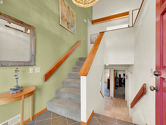 Perched on a generous .38-acre lot with sweeping views of the coastal range, this stunning 2,476 SqFt home offers the perfect blend of comfort, style, and functionality. Nestled in the highly sought-after SW Hills, this home is designed to impress! The main level has a large living room with soaring ceilings, a wood-burning fireplace and is open to the formal dining area. A spacious Trex deck off of living room is perfect for hosting BBQs in the warmer seasons. Off of the formal dining area you will find a galley kitchen and a vaulted nook with skylights offering an abundance of natural lighting. Main level primary suite boasts a gorgeous, tiled bathroom with double sinks and an ample sized walk-in shower + access to the deck. Two additional bedrooms with charming window seats are also found on this level. Downstairs, the versatile lower level boasts a spacious family room with a second fireplace, a built-in workspace, and double closets. A fourth bedroom and an oversized laundry room with a utility sink round out this level, offering ample storage and functionality. Outside, the .38-acre yard is a dream, providing endless possibilities for gardening, play, or simply unwinding in your own park-like setting. Don’t miss out on this exceptional SW Hills gem—schedule your showing today!