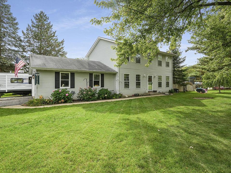 Enter this expansive colonial-style home located in the Village of Salem Lakes, boasting three bedrooms and two and a half bathrooms. The main floor features a semi-open concept design, allowing ample natural light to illuminate the space. It's an ideal layout for entertaining, with the kitchen seamlessly flowing into the dining and living areas. Step out from the kitchen onto the expansive deck and into the fenced backyard, providing a great outdoor space for relaxation and gatherings. On the second floor, you'll find three generously sized bedrooms, including a master suite complete with a full bathroom and a walk-in closet. The lower level offers a finished rec room and a bonus room that can serve as an office. Plenty of room to customize and make it your own.