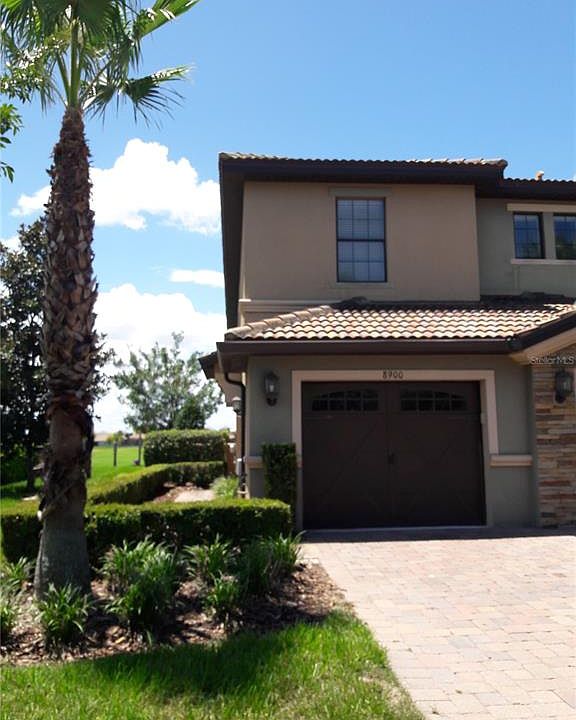 Great opportunity to get the home completely furnished in Championsgate Community. Beautiful and modern condo in the Champions Club Resort. A luxury gated, 24/7 guarded, Golf community of Champions Gate the most desirable community in Davenport Florida. The one-story condo offers an open floor plan that features an indoor laundry room, a 1 attached car garage. It is an END UNIT property with a side entrance and is in a cul-de-sac. The kitchen includes stone countertops, a breakfast bar, stainless steel appliances and a recessed lighting, ceiling fans, in wall pest control system and alarm system on place. The master bedroom features a WALK IN CLOSET, a side door from master suite and a slide door to the lanai with amazing golf views. The ensuite bath with stone countertops, dual sink, a garden tub and a separate shower. The interior of the home has been professionally painted and equipped with ceramic tile through living area, baths and laundry room. The house is offered furnishing. THE OASIS CLUB HOUSE includes a HUGH POOL, LAZY RIVER, HOT TUB, WATER SLIDE, POOL SIDE BAR, TENNIS COUTS, YOGA ROOM, FITNESS CENTER, BUSINESS CENTER, PLAYGROUND, A GOLF COURSE AVAILABLE and more. HOA INCLUDES ROOF, LAWN, AND EXTERIOR PAINT MAINTENANCE, CABLE AND INTERNET. CHAMPIONS CLUB only allows long term rental and a minimum lease period of one month. the Resort is located close to WALT DISNEY WORLD, DISNEY SPRINGS, ORLANDO INTERNATIONAL AIRPORT, ORLANDO OTHER THEME PARKS, SHOPPINGS, RESTAURANTS, MALL OF MILLENIA, ORLANDO HEALTH and quick access to Hwy 27 and interstate 1-4 and more. Don't miss the opportunity to live in a luxury Resort. Schedule your showing, easy to show it.