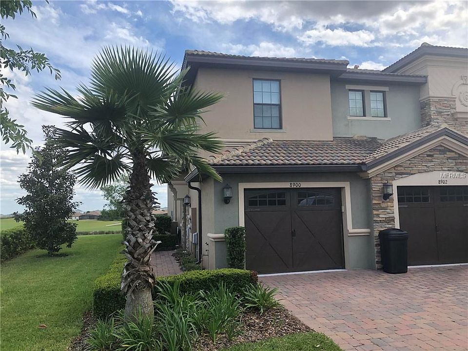 Best lot in the whole street - direct most attractive view of the golf course from the end unit. Vacant and ready for new owner. This 2 bed, 2 bath first floor condo has one of the largest driveways to the single garage and one of the few units with garage door opener fitted. The property comes complete with Washer and dryer. property has had a professional clean, new paint and carpets professionally cleaned also. Championsgate has many great amenities including 2 community pools, lazy river, splash pad, fitness center, yoga room, movie theater, tennis courts and golf. the community is centrally located for motorway and easy access to attractions. Motivated seller.