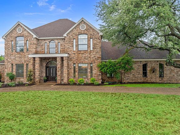 Surrounded by mature live oak trees on over an acre in the prestigious Long Canyon neighborhood, this beautiful home blends privacy, natural beauty, and flexible living. A circular drive leads to the inviting front porch with an oversized wood and leaded-glass entry door. Inside, a grand two-story foyer features Brazilian wood flooring and an elegant staircase. To the left, a formal living room doubles as a home office or flex space, while to the right, a generous dining room is perfect for dinner parties or holidays.The open-concept kitchen includes a large center island, granite counters, abundant cabinetry, and a sunny breakfast area overlooking the backyard oasis. Off the kitchen, a bonus room currently serves as an office but could function as a butler’s pantry, planning nook, or hobby room. The functional floor plan includes four spacious bedrooms, three full baths, and two half baths. Two bedrooms share a Jack-and-Jill bath, while the upstairs guest suite has a private en suite and separate access from the oversized game room—ideal for teens, guests, or multi-gen living. Other highlights include a large utility room with a work sink and an oversized three-car garage with ample storage. Out back, enjoy a covered patio overlooking the sparkling pool and hot tub, surrounded by new landscaping, colorful garden beds, and stone pathways. An outdoor shower and a half bath accessible from the utility room add convenience. The fenced yard backs to a wooded greenbelt with a gated path into the trees—great for privacy or potential canyon views. Long Canyon offers scenic, walkable streets and top-rated schools. Zoned to Leander ISD with a bus stop at the corner, this home is just 25 minutes to Downtown and 15 to The Domain, offering the perfect balance of serenity and convenience.