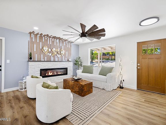 This upgraded one story home, with three bedrooms and two baths, invites comfort with all the modern touches. Interior highlights include an open concept floor plan, a brand new kitchen complete with quartz countertops, and a large kitchen island. Both bathrooms have been completely remodeled & have custom walk-in showers, soaking tub, fixtures & mirrors. This home also includes all new interior & exterior paint, beautiful new flooring, new fixtures throughout, all new fans, new decking on both the front and back patio. Other highlights include a spacious paver driveway for lots of parking, a large fenced backyard, a newer roof, an interior laundry area, new garage door, a new garage door opener, epoxy flooring in garage.