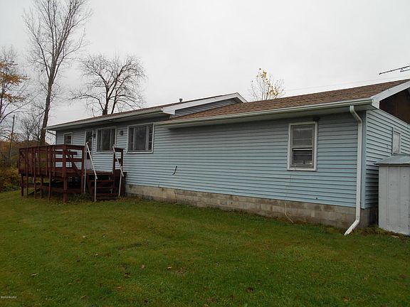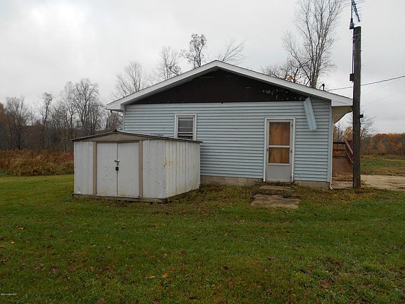 This 2 bedroom 1 bath with open floor plan and garage on 5.4 acres. Has pond and pole barns. The home will need some work but has a lot of potential.