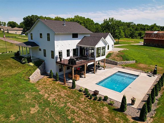 Your DREAM HOME has been found! This Modern Farmhouse inspired estate sits tucked away, just outside of Hannibal, on approximately 7+/- acres. The antique barn, fields of wild flowers, front porch swing, and in-ground pool are just a few of the amenities it has to offer. Once inside, you will be swept away with sophisticated styling, elegant woodwork/paneling, and touches of traditional flare. This premiere estate offers 5 bedrooms (2 additional sleeping or hobby rooms), 3.5 bathrooms, marble countertops, and an exquisite gourmet kitchen. The Owner's suite feels like a boutique hotel with marble flooring, walk in shower (for two), soaking tub, and dressing room. The ambient Sun room looks over the pool and serene wooded surround, it will be definitely be a focal point for the entire family. The LL is the ultimate entertaining space complete with a full kitchen including quartz countertops and stainless appliances. Don't let this one get away! Schedule your private viewing today. Additional Rooms: Sun Room