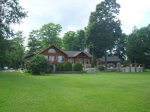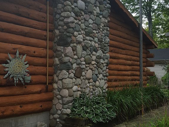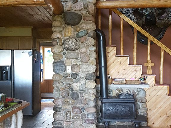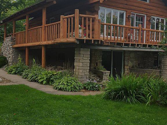 This is an absolutely stunning home on gorgeous 273' of lake frontage. The kitchen has been remodeled and has beautiful custom concrete counter tops. stone faced island with the oven range, plus room for seating and a view of the lake. The kitchen opens to the dining area, a beautiful staircase with a waterfall background and a pine tree banister cap, and the sunken living room with its beautiful stone fireplace, stone half walls with shelving, and easy access to the wrap around deck. Just beyond the deck, you will find the stamped concrete patio with a fire pit and the covered outdoor bar with its own fireplace. There is an 11X11 area off of the family room that has cabinetry, counter tops, and birds eye maple flooring. The lower level is a walkout for easy access to the park like yard. One garage is 20X22 with a 10X20 lean-to and the other garage is 30X44 with a 12X48 carport. The craftsmanship abounds from the stone masonry on the fireplaces, porches gardens, and walkways to the open beams in the main part of the house. This home must be seen to be appreciated.