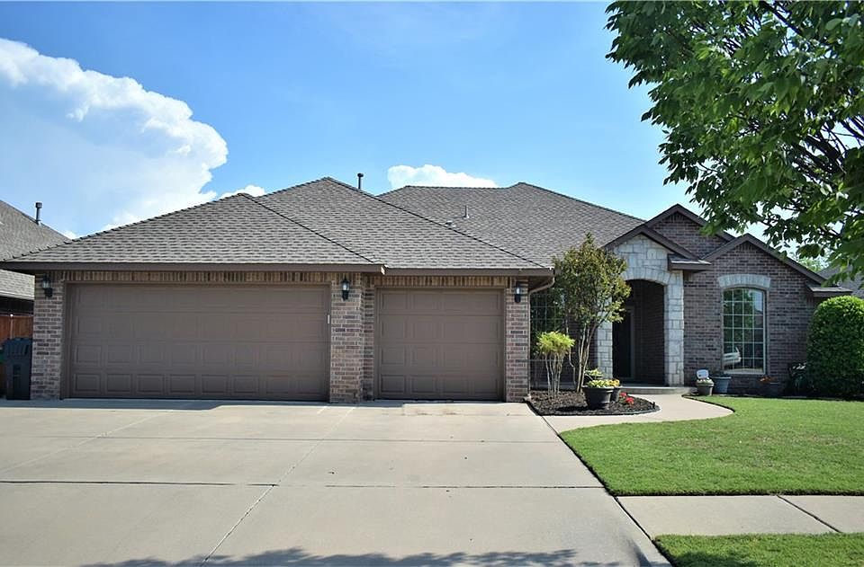 Move in Ready in Chapel Creek! Beautiful, well-maintained home with 3 bed plus office, 2.5 bath with an open concept floor plan. The master suite has his-n-her vanities, walk-in shower, jetted tub, and large walk-in closet with built-ins for storage. Two bedrooms are located on opposite side of home and feature closets with double doors and Jack and Jill bath. Kitchen includes a large island, quartz counter tops, new dishwasher and range, and large pantry. This home also offers generous storage throughout. Enjoy the backyard which features a large, partially covered patio as well as sprinkler system. The three car garage includes an in-ground storm shelter for your peace of mind and a new hot water heater. Seller is offering a one-year home warranty with the home. Community pool and playground included and located in Piedmont Public Schools! Hurry, this home will not last long!