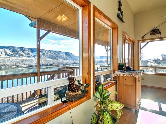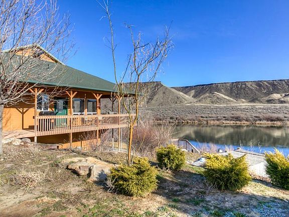 LIVE in your vacation home close to town on over 5 irrigated acres overlooking dredge island along the Snake River! 253Ft of riverfront along with the 3224 sq.ft. home with a 360 degree deck and commanding views of the canyon and wildlife. NO CC and R's or HOA's so bring your animals and RV. Lot has pad poured for the detached shop and access for boats to the water from property! Add more bedrooms in the partially finished and insulated daylight basement as needed. Theater room with all equipment included!