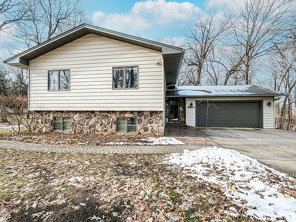 Enjoy the secluded country living feel with all of the space and privacy on this large 3.68 acre lot with mature trees!! There is simply no lot that compares to this one! Vaulted ceilings and spacious kitchen provide and open feel for entertaining inside. Beautifully remodeled bathrooms make it a must see! Conveniently located adjacent the South West Village park and ride which can be accessed directly through the privacy fence. Very nice south facing deck and great area for entertaining in the backyard with a firepit and stamped concrete patio . This property is an excellent opportunity to buy and hold for future development. Attached 2 car garage and additional 28x40 heated workshop provides plenty of additional storage and would be perfect for the hobbyist or small business owner.