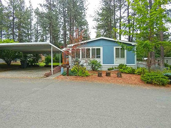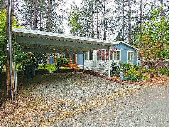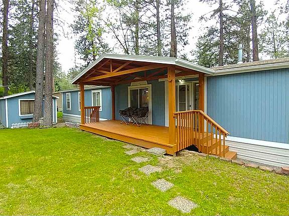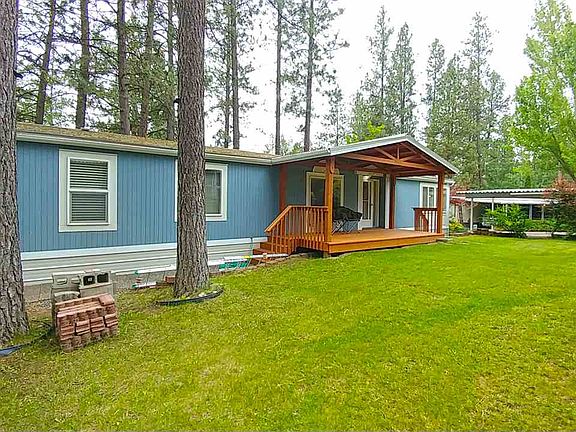 Welcome to this well-maintained open concept home featuring a big kitchen & large island w/eating bar, formal dining, family room, garden tub, skylights, fenced side yard, and shed/shop w/wall-to-wall shelving & electric. All new covered front deck, gutters, skirting, heat pump, and refreshed back deck in 2019. Stay cozy in winter with the propane stove/fireplace. All appliances stay including washer & dryer, and RV parking is available. Must be approved by park management.