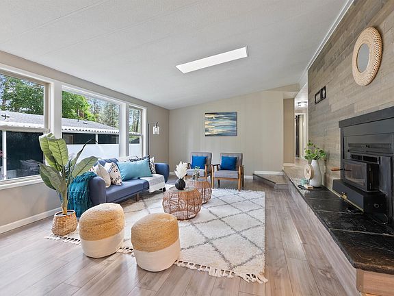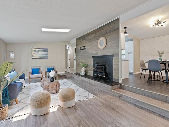 Just minutes to the South Hill, Downtown Spokane, Latah Valley, and Airway Heights, with so many amenities in between, welcome to the pristine Mullen Hill Park, where you’ll find a completely remodeled double-wide home, with outstanding, manicured curb apparel, and eye-catching, unique architecture. This home features a spacious primary bedroom with an en-suite, walk-in closet, and an additional two bedrooms and full bathroom. A beautiful custom kitchen with stainless steal appliances and a formal dining space make this home a stand-out in the community. Outside you’ll find an entertainer's dream, with a fully fenced back yard, a large deck and patio surrounded by nature. Not to mention covered parking and upgrades like the brand new smart HVAC system featuring AC! Be sure to watch the video tour and schedule a showing today! **Please note this home is on leased land.**