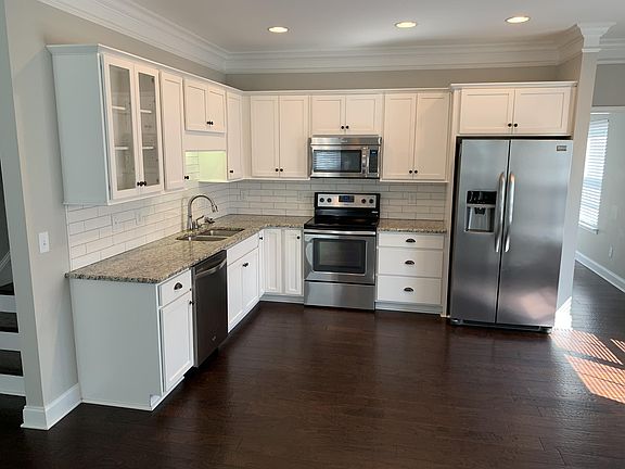 3 Bed, 2.5 Bath end-unit townhome with 2 car garage. Home features an open floorplan w/ hardwood floors, granite counter-tops and stainless appliances. Master on first floor and bonus space between bedrooms on second floor. Private patio and views of green space out every window. Washer and Dryer included in rent. Home is located next to a Mill Creek Park/Greenway and just down the street from the Lenox Village shops and restaurants. No Pets