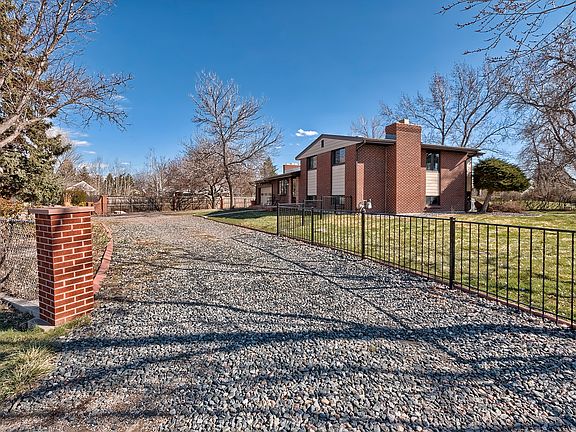 For a private showing contact Nicki Thompson at 303-725-1874. Fully updated tri-level home on a nearly half an acre lot! Located across the street from Robby Ferrufino Park, private circle drive, stamped concert patios, sunroom with sauna, deck with hot tub, 2 car garage, and storage shed. Hardwood floors extending from the main living room, 2 wood-burning fireplaces, remodeled kitchen with custom wood trim, hickory cabinets, stainless steel appliances, hardwood floors extending up the stairs and into the upper level. Remodeled bath with new vanity and tile. Master bedroom boasts extending sitting room with private balcony. Lower level family room with wood-burning fireplace, bar area, and 4 bedroom. Shows beautifully and is available for quick move-in!
