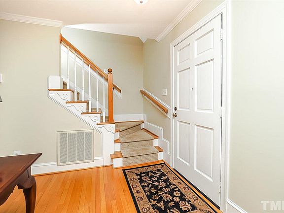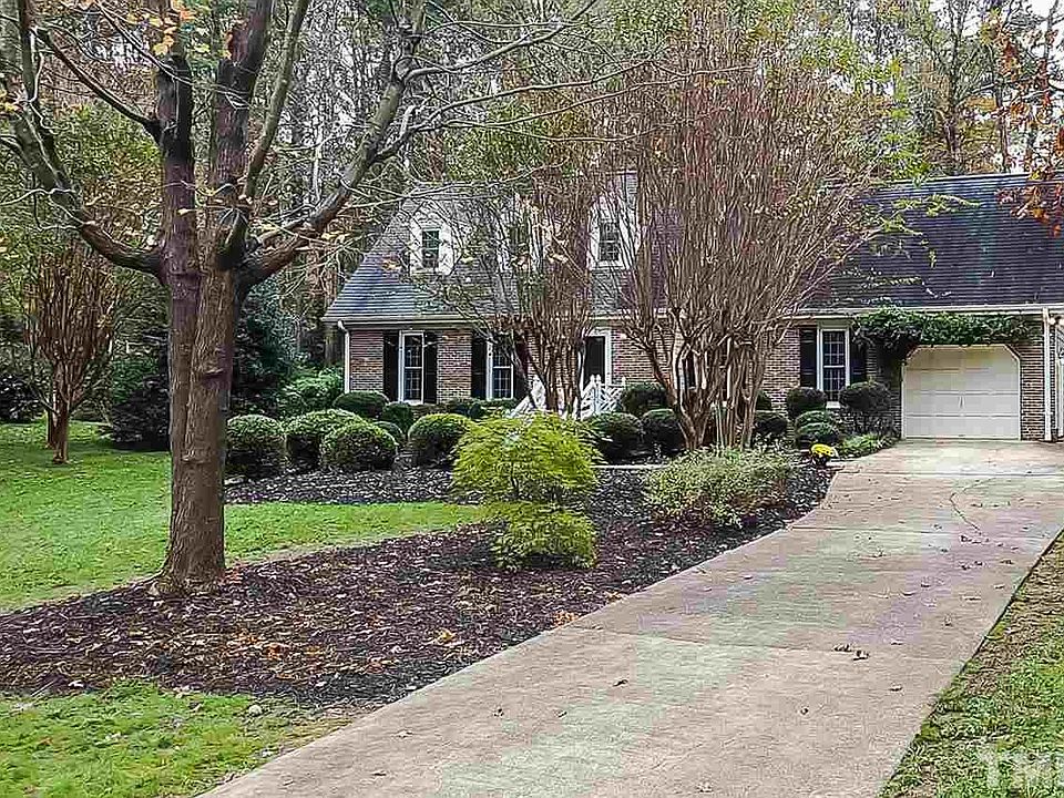 RENOVATED, charming classic Cape Cod in coveted STONEHENGE community. Sparkling clean. MINUTES TO RDU. Open expanded kitchen area-stainless/granite/farmhouse sink. Spacious outdoor living w/ brick firepit. Beautiful wooded private back yard. Refinished hardwoods throughout main level. Exquisite bathrooms: top grade tile floors, walls, frameless shower. Smooth ceilings, new windows, new dual zone HVAC. EASILY RE-CONVERT L shaped Living/Dining and oversized 1/2 bath to ORIGINAL FIRST FLOOR MASTER SUITE
