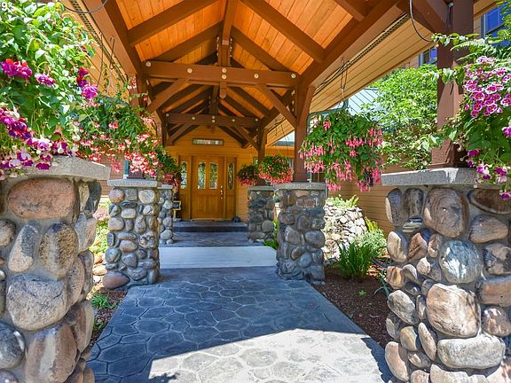 WOW! Unbelievable Private Whitewater Estate perched high on a ridge top overlooking McKenzie Valley and stunning waterfall. This stunning custom home offers over 4700sf with vaulted beam ceilings, hardwood floors, built-ins, River rock fireplace, massive windows, covered patio, 1300sf of deck for entertaining with outdoor kitchen, 75' of hidden waterfalls in the tall timber, several outbuildings, sprinklers and raised beds.