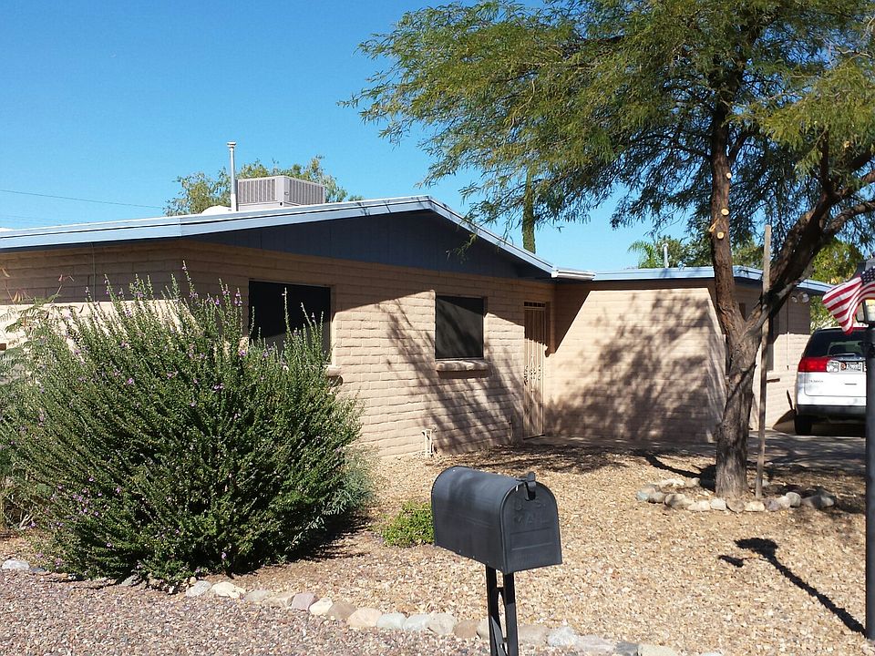 PRICE REDUCED! Fantastic home in Rolling Hills in East Tucson! This move in ready, newly renovated home has upgrades at every turn! Gorgeous wood-laminate flooring, custom paint and handsome brick fireplace with plenty of hearth-side seating. Beautifully designed kitchen boasts stainless steel appliances, custom cabinetry w/hardware, granite counters and a breakfast bar. Spacious bedrooms have new plush carpeting. Master includes a private exit and adjoining bath. Permitted room addition can serve as a second master, a game room or large family room! All baths have tile surround showers. Enjoy the wonderful Arizona sunsets from covered patio that overlooks the private backyard! This home is ready for your personal touches! See it today & start packing!