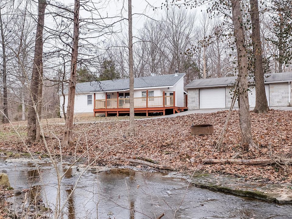 Don't miss this great opportunity to own 2.5 acres within a rocks throw to Jefferson County. Enjoy all the perks of Oldham County including no HOA, one of the state's best school districts and country living at its best while being so close to The Paddocks and all the great restaurants and Kroger. This ranch is just under 1400 sq. ft. with 3 bedrooms and 3 baths, and features a beautiful creek running through the property, 2.5 car detached garage, and plenty of space to do what you like. This home also has a wood stove for secondary heat source.