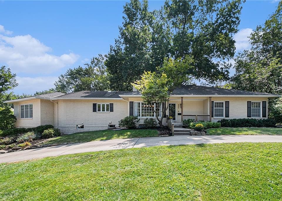 Discover the charm of this sprawling raised ranch, perfectly situated on a beautiful, treed corner lot in the heart of Old Leawood. This exceptionally spacious home is brimming with potential and offers a warm, inviting layout. You'll be welcomed with a circle drive and established landscaping. A covered front porch leads you to a formal entry and an open, light-filled living room with a magnificent fireplace and hearth. Formal dining here is enhanced with large windows and beautiful woodwork. Natural light, updated paint and new fixtures make it a fresh and vibrant space. You'll love access to the screened-in porch. The generous kitchen is designed with a center island, double ovens, gas range, plenty of cabinet storage, excellent counter space, and a cozy breakfast nook with access and views to the sprawling backyard.  An expansive and open second living room just off the kitchen enhances the home’s entertaining flow, featuring custom built-ins, a two-sided fireplace, and walk-out access to a large deck overlooking the backyard. Half bath on the main level. A perfect blend of the modern space you need with the charm and character Old Leawood is known for. Main floor offers 4 spacious bedrooms each w/ excellent closet space, including a primary suite w/ a private en suite bath and double closets. Wide hallways continue the generous feel of the home. The lower level extends the living space with a 5th bedroom complete with an egress window, a spacious rec room or home office, wet bar, and a full bathroom. You’ll also find incredible storage options throughout the lower level. Two car garage and don't miss the expanded workshop area behind the garage! Hobbies, work, entertaining, friends and family all have room in this one-of-a-kind home! Large lot with fenced backyard, mature trees, spinkler system and desirable neighborhood are ready for you! With its prime Old Leawood location, abundant living space, and versatile layout, this home is ready for its next chapter.