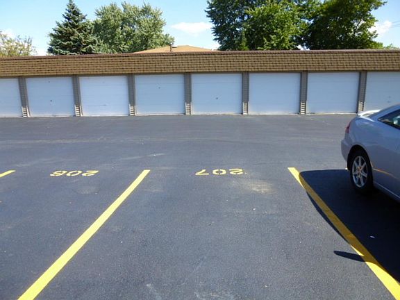 Diamond in the rough 2nd fl elevator building condo! Needs some paint/carpet and basic updates/repairs so sold AS-IS but seller offers 13 Month Home Warranty. 2 bedrooms, 1.5 baths, living room, kitchen and dining area with bacony off back of building. Laundry room on floor and extra storage room in basement. One car garage w/separate PIN and one assigned parking space directly across from garage. Take a LOOK!