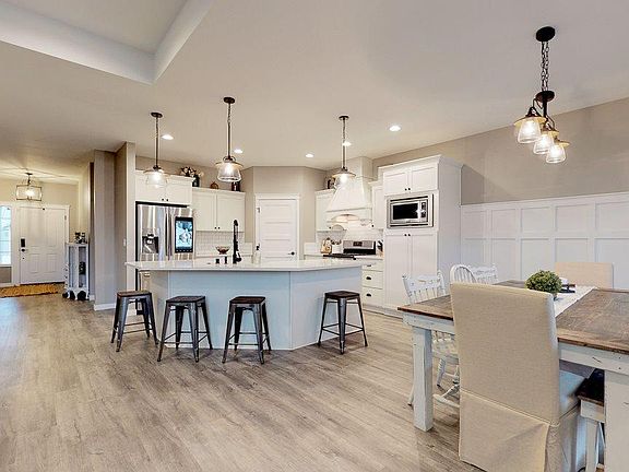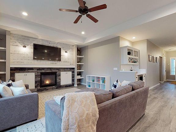 Impeccable modern style and well-designed layout in this highly upgraded 3 BR 2 BA + an office rambler in West Pasco's conveniently located Ellie Anne Estates! This better than new home features split-bedroom design, quartz counters throughout, open-concept, LVP flooring, Nest thermostat, raised ceilings, and plenty of natural light. Great room is ideal for gathering and entertaining with custom built-in entertainment wall, stone surround gas fireplace, and wine bar with chiller! Meal prep is a dream in the gorgeous gourmet kitchen with quartz counters, large island, eating bar, stainless steel appliances (including Samsung Smart Fridge), gas range, stylish farmhouse sink, corner pantry, and large dining area! Den/office with barn-style doors for privacy when desired! Oversize master retreat complete with private bath boasting tile galore, dual vanities, soaking tub, luxurious walk-in shower, and custom walk-closet with built-in organization! Private, fully-fenced backyard with oversize patio! This is a can't miss home--call for your private showing today!