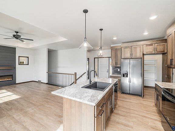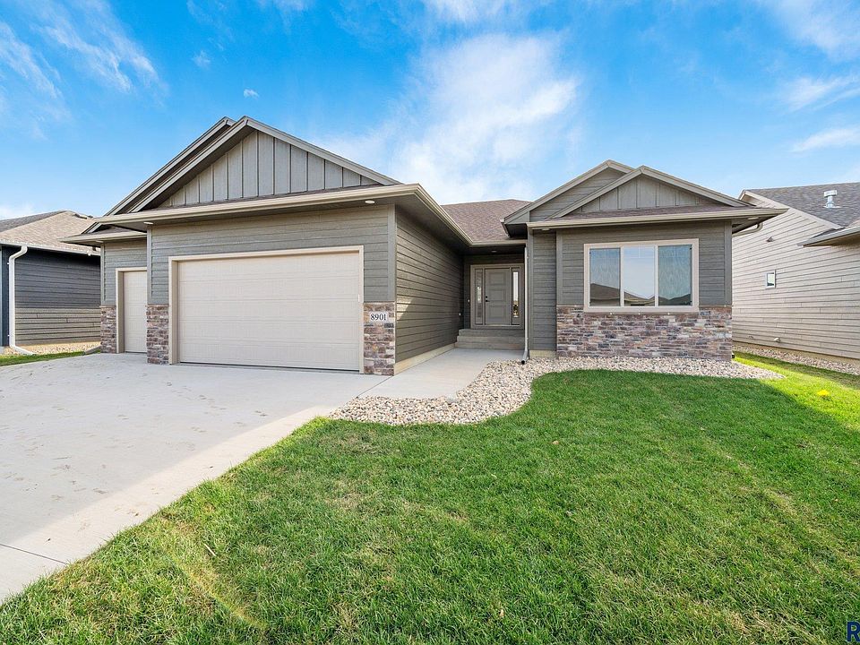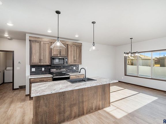Spectacular Ranch Style Home in the Windmill Ridge Addition in West Sioux Falls! If you have been wanting an open floor plan this Warrior plan is as open as it gets. High quality amenities include 3 panel doors, 9' ceilings throughout main floor with tray ceiling in the living room, electric linear fireplace in living room, hand scraped Tuscan ceilings, custom closet shelving, and high efficiency Carrier furnace and central air units. Luxurious kitchen features Showplace custom cabinetry finished in a stylish Tawny stain accented with tile backsplash, hidden walk-in pantry, center island, and black stainless steel kitchen appliance package included. Master suite is finished nicely with a trayed ceiling, private bath with tiled shower walls and dual sinks, and walk-in closet. Lower level has potential for 2 more large bedrooms, a full bath, and an enormous family room! Main floor laundry, a partially covered 17'x10' rear deck, and oversized 3 car garage w/drain finish this home nicely.