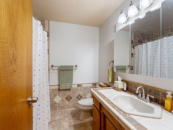 MLS# 287070 This home is so light and bright with large windows and vaulted ceilings in the living room and huge eat-in kitchen you will almost feel like you are outside. The rooms are large and there are ceiling fans throughout the home, keeping the air flowing. The family room could be an office or craft room and is nicely out of the way, tucked behind the kitchen. The kitchen has granite tile countertops and a built-in oven and microwave next to the cooktop. The bedrooms are spacious with nice-size closets. There is a doggy door near the sliding door to the deck in the large Primary bedroom, and the bath has been nicely updated with a large walk-in shower. You will find a deck outside the Primary bedroom is shaded by a large tree, and a covered patio outside the kitchen area, where you can sit after dinner and just enjoy being outside. The backyard is perfect - there is an area for your garden and 2 sheds to store your tools. This is a delightful home in a very convenient location and will delight all of your senses. The laundry room has a sink and the washer and dryer stay! What more could you ask for? Stop in for a visit...You won't be disappointed.