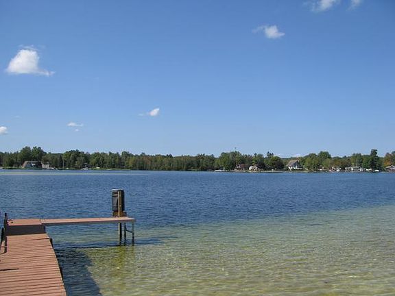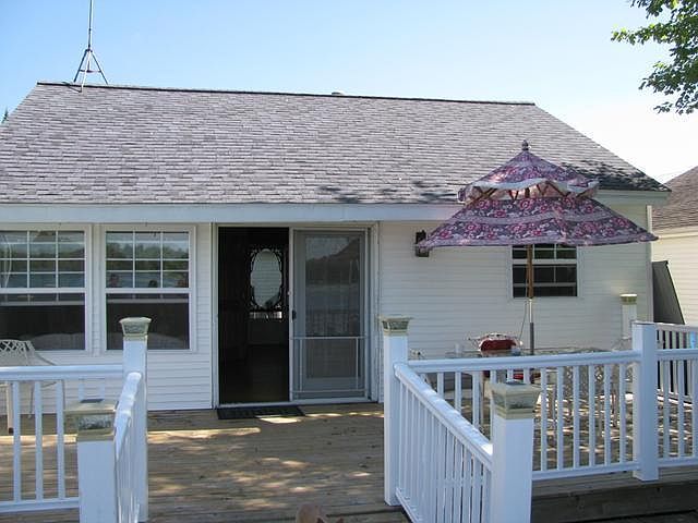 2 bedroom cottage with 50 ft of sandy water front on Littlefield lake .