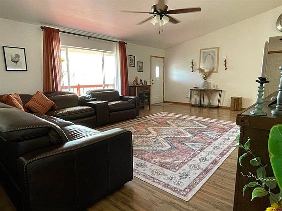 Absolutely gorgeous ranch style 4BD/3BA home on 1 acre with irrigation water! And it get's better! This home is freshly painted, has all new light fixtures and ceiling fans, new carpet in the bedrooms and two master suites! The irrigation pump and underground sprinkler system make watering this spacious paradise a breeze! Backyard is fully fenced and has a dog run! The open-concept and split floor plan provide a nice-and-easy flow. Storage galore! 4 storage sheds and 3 have power! The kitchen features granite countertops, updated hardware and ample storage space! Huge closets and tons of storage throughout! This home also features an oversized dedicated laundry room with an attached storage room/extended pantry/private office as well. Enjoy hanging out and watching the world go by on either your covered front porch or back patio! About equidistant to both Montrose and Olathe, this is an ideal location! Don't miss out on all this amazing countryside property has to offer! There is so much to see here!