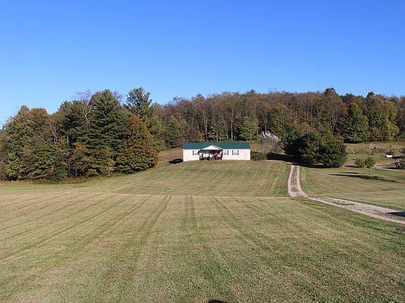 River View Schools or possible open enrollment for Licking Valley Schools! This 3BR and 2BA ranch home with 1/2'' drywall and extra Insulation sits on 4 acres! Open concept oak kitchen fully applianced with stainless steel appliances and breakfast bar, plus eat in kitchen. Spacious family room, and an additional living room overlooking the hillside. Large front porch for your enjoyment. The master suite has a large bathroom with double sinks, tile shower, and garden tub. Convenient office or library on the main level. First floor laundry plus large unfinished basement, 13 block high with walk out. Boiler system in place. The 30'x40' detached garage has openers, water, and 220 amp outlet!