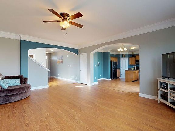 TONS OF SQUARE FOOTAGE! Beautiful, open, 3 BR/ 2-1/2 bath home and one of the largest homes in the neighborhood. As you enter you will immediately notice the arched entryways and crown molding throughout the first floor. The eat-in kitchen with an island is open to the great room-perfect for entertaining, both with new waterproof Duralux vinyl flooring. The other room on the main floor could be used as a formal dining or could be converted it to a bedroom by adding a closet and door. A half bath is just around the corner. Off the kitchen is a large deck updated with new floor, overlooking the yard with underground fencing and covered patio. Upstairs is the ABSOLUTELY HUGE MASTER SUITE WITH 2 WALK-IN CLOSETS and full bath with a separate tub and shower. There are 2 other bedrooms, full bath, and laundry upstairs and a spacious loft perfect for a computer, play area, or study. Most rooms have been freshly painted. The walkout basement with roughed-in bath is ready to finish and add even more square footage. Call for your personal showing!